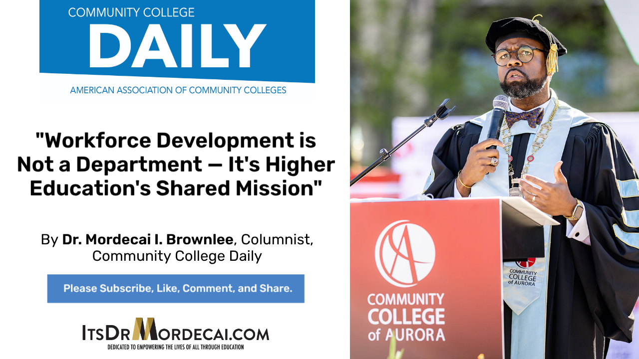 Workforce development is not a department — it’s higher education’s shared mission March 15, 2026 Mordecai Brownlee DescriptionDr. Mordecai I. Brownlee wrote this article.Article URLhttps://www.ccdaily.com/2026/03/workforce-development-is-not-a-department-its-higher-educations-shared-mission/